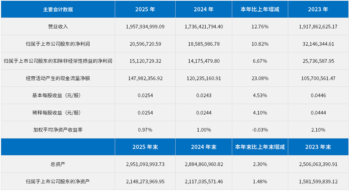 2025年度主要會計數據和財務指標