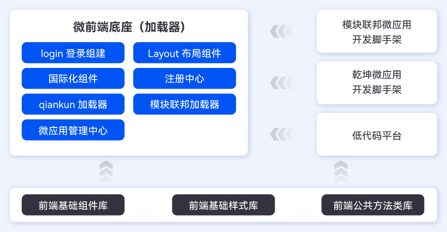 基礎類庫:為解決樣式和編碼規范統一等問題,需要一系列的基礎類庫,如基礎組件庫,樣式庫等;
