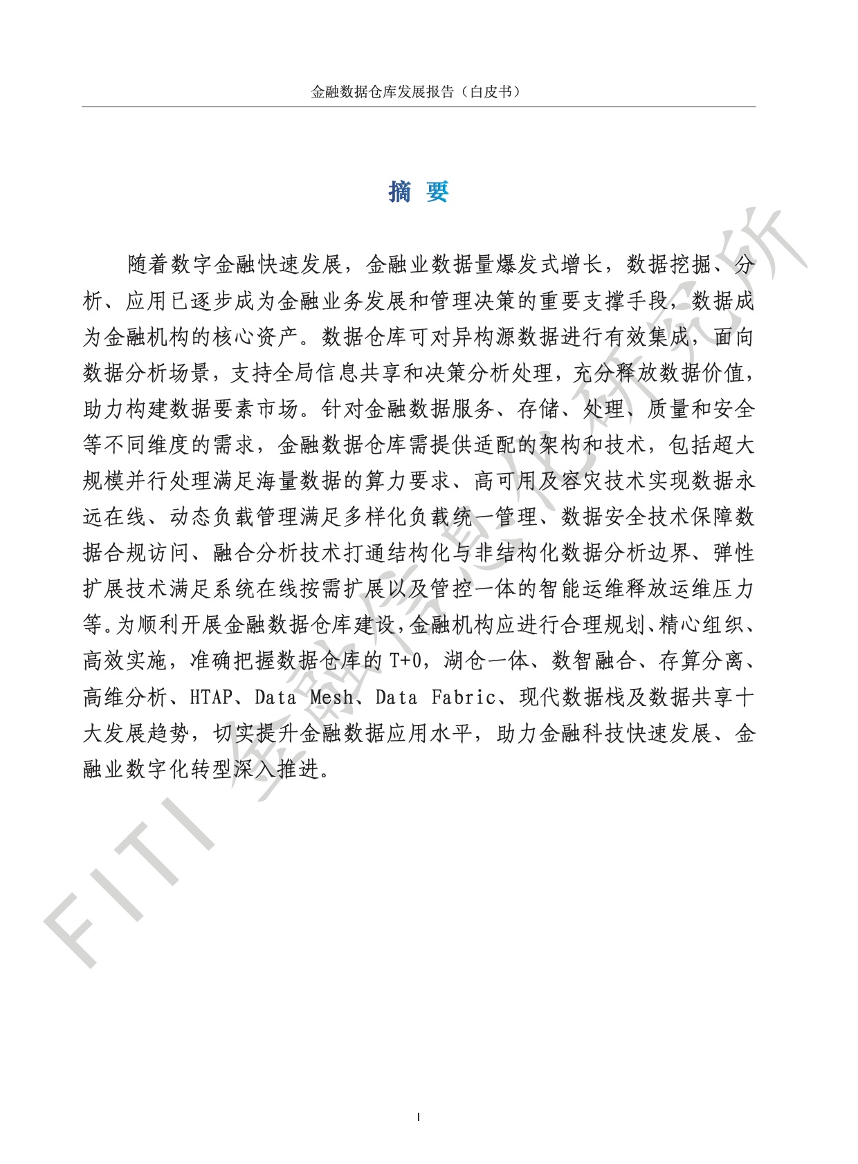金融信息化研究所《金融數據倉庫發展報告(白皮書)》