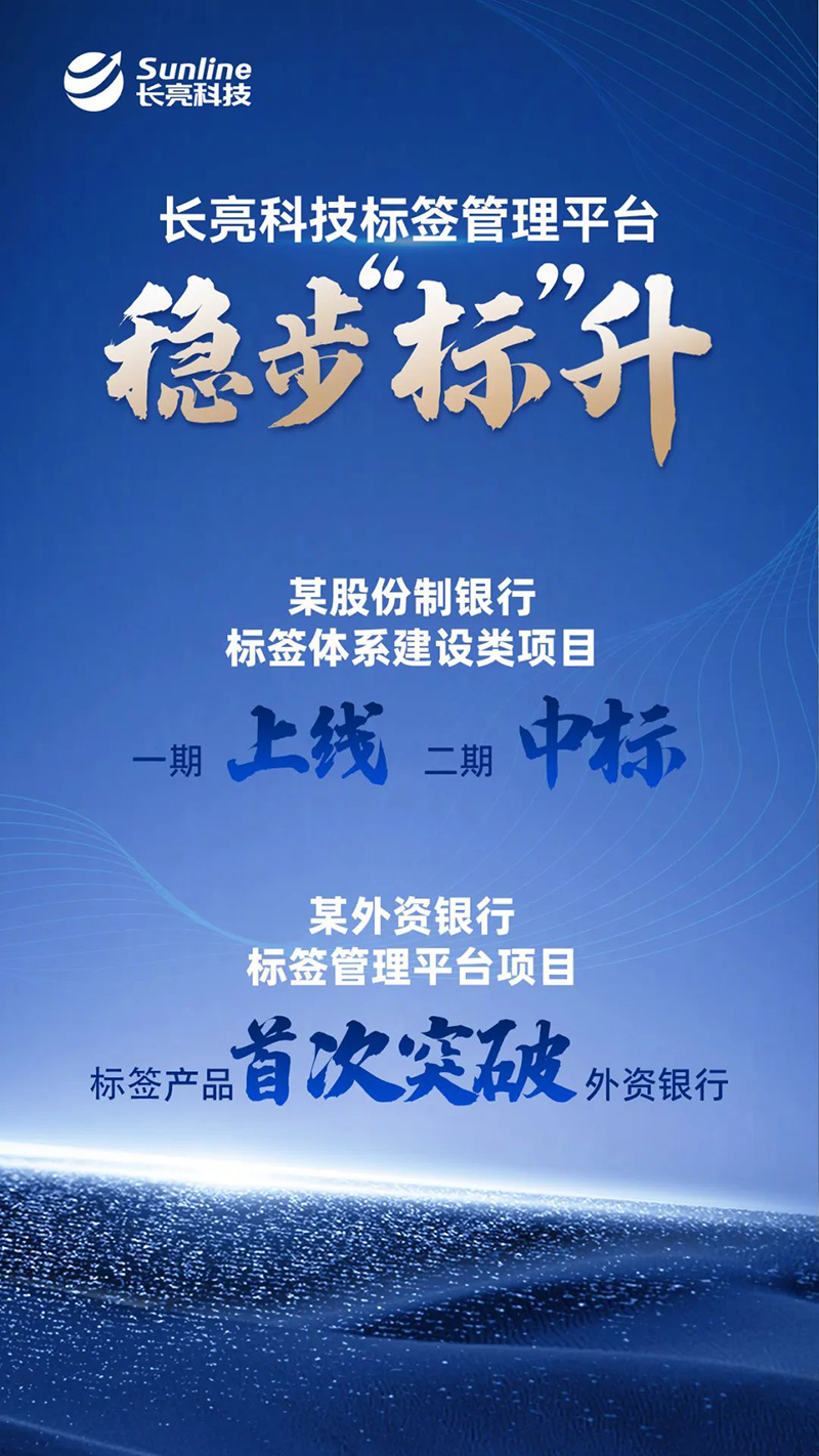 憑借出色大數據產品及解決方案優勢,長亮科技接連中標某股份制銀行和某外資銀行標簽體系建設類項目,助力客戶構建數據資產化的底層能力。