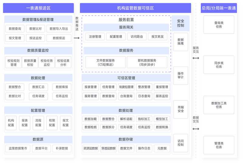 “一表通”作為長(zhǎng)亮科技統(tǒng)一監(jiān)管報(bào)送平臺(tái)子系統(tǒng),繼承了傳統(tǒng)報(bào)送模塊各類功能,包括統(tǒng)一的機(jī)構(gòu)管理、權(quán)限管理、菜單管理、數(shù)據(jù)管理、報(bào)表管理、數(shù)據(jù)質(zhì)量監(jiān)控、配置管理、報(bào)送管理等,并涵蓋了符合監(jiān)管建設(shè)規(guī)范要求的可信區(qū)系統(tǒng),系統(tǒng)支持多法人,內(nèi)置完善的校驗(yàn)規(guī)則并提供可配置管理功能,對(duì)監(jiān)管數(shù)據(jù)進(jìn)行多級(jí)校驗(yàn),全面提升報(bào)送數(shù)據(jù)質(zhì)量,助力金融機(jī)構(gòu)高效完成監(jiān)管報(bào)送工作,降低合規(guī)風(fēng)險(xiǎn)。
