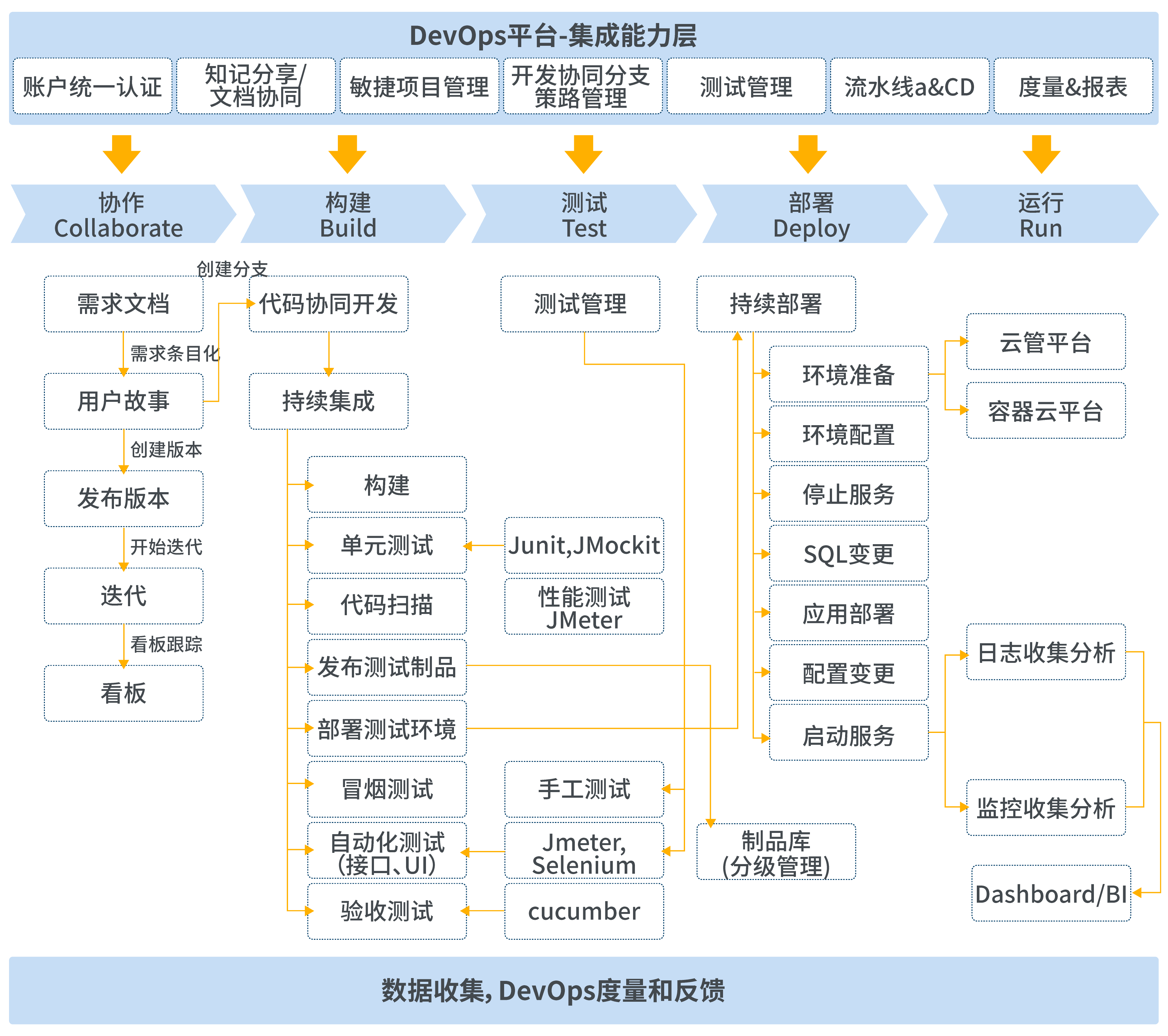 長亮科技 DevOps 解決方案提供端到端持續交付能力、集成能力。如下圖所示: