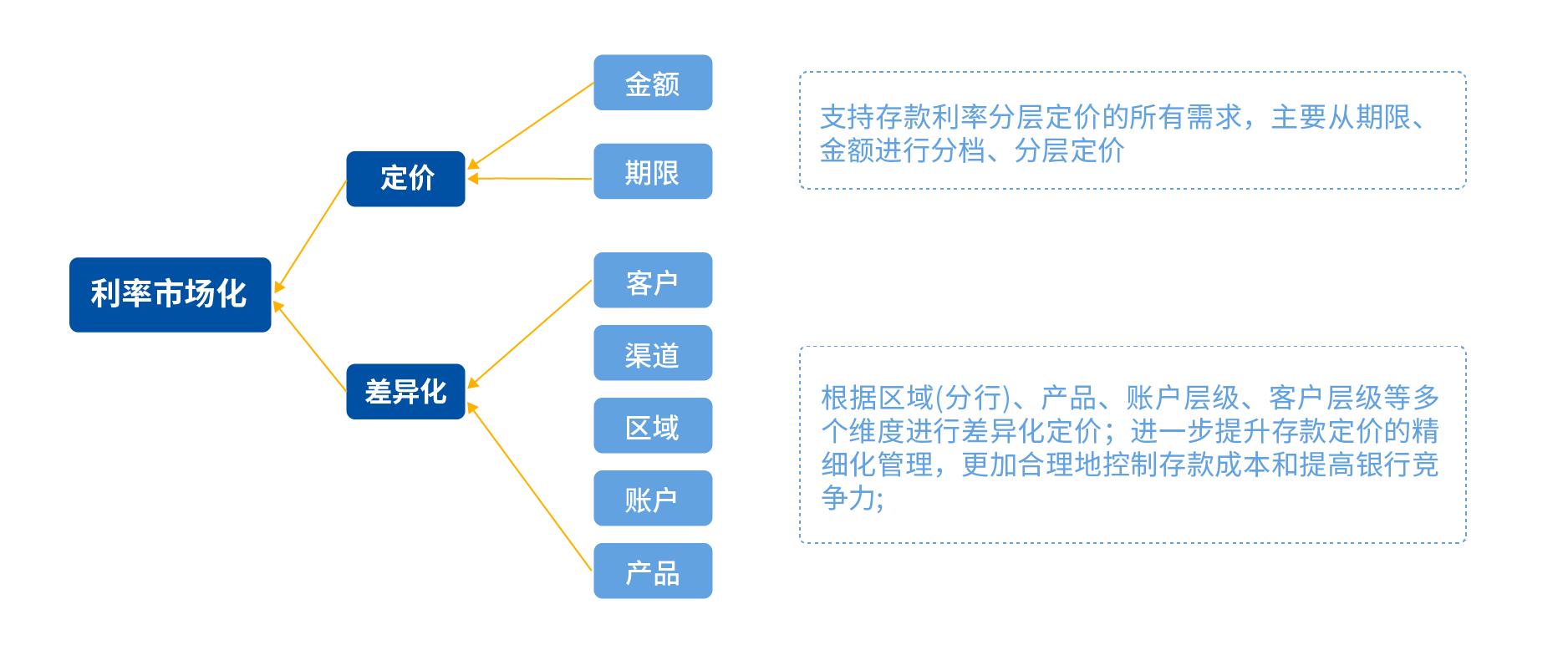 通過統(tǒng)一的利率工廠和靈活的利率定價模型,可以更好的支持商業(yè)銀行對客戶的差異化定價,支持與產(chǎn)品差異化定價共同實(shí)現(xiàn)產(chǎn)品創(chuàng)新和面向營銷的經(jīng)營活動,幫助商業(yè)銀行實(shí)現(xiàn)全面支持利率市場化的精細(xì)化管理要求,抓住市場機(jī)遇,迅速壯大商業(yè)銀行業(yè)務(wù)規(guī)模,持續(xù)增強(qiáng)企業(yè)盈利能力。