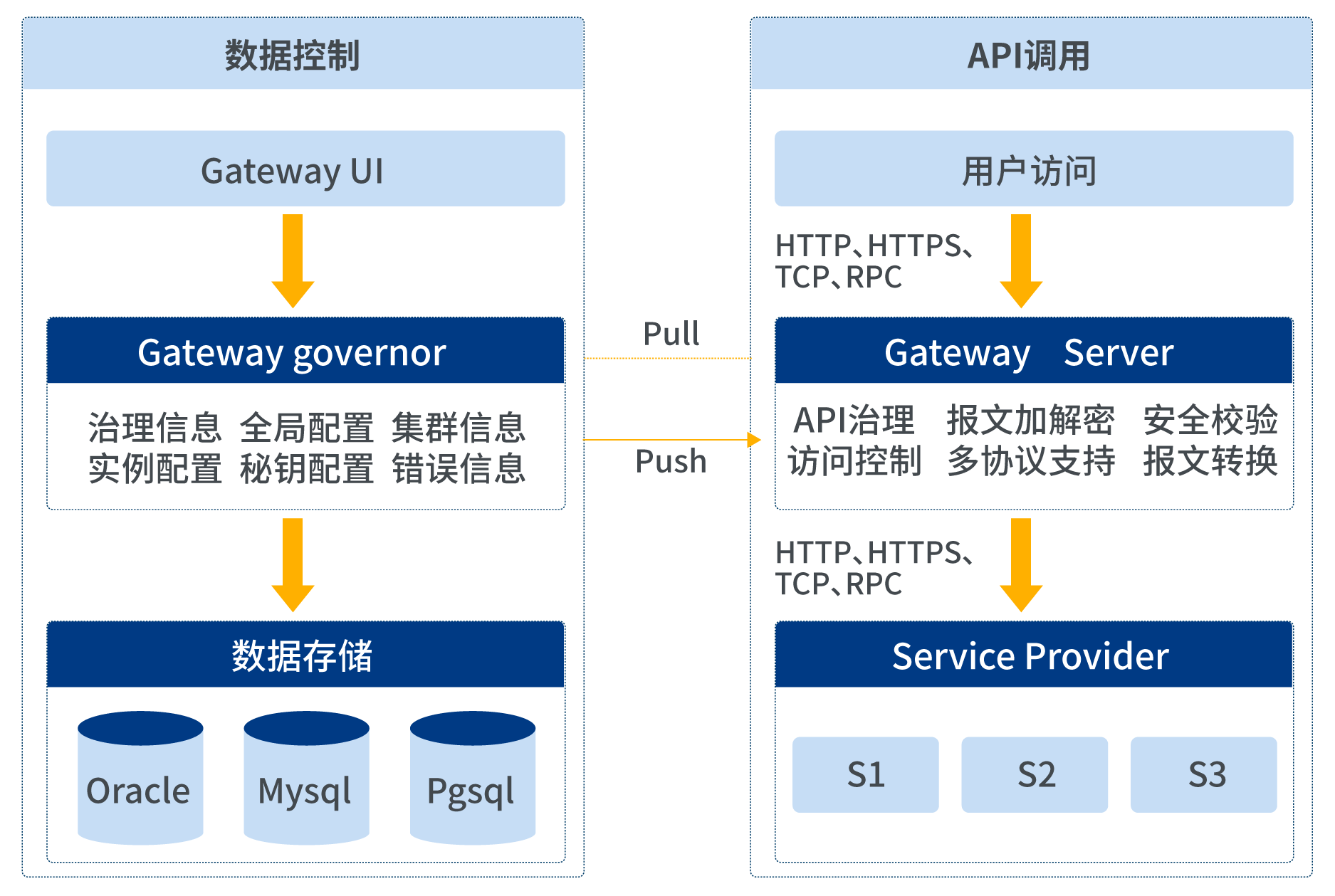? 管控端主要作用為管理網(wǎng)關(guān)配置、UI交互、推送數(shù)據(jù)到網(wǎng)關(guān)運行端等,管控端和服務(wù)端分工明確,讓真正負責處理請求的網(wǎng)關(guān)運行端,爭取資源最大化。