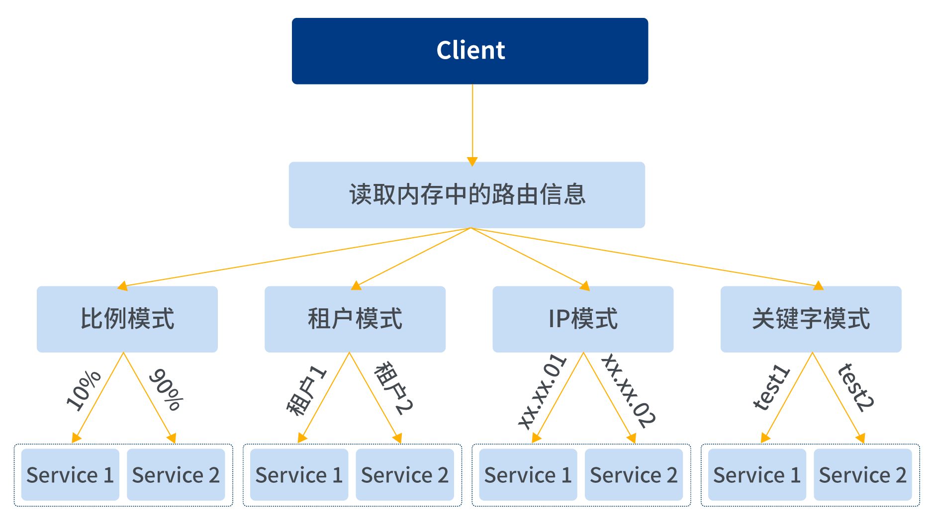 ? 比例模式:設(shè)置不同的比例進行路由,例如實例A消化掉90%的API調(diào)用,實例B消化掉10%的API。