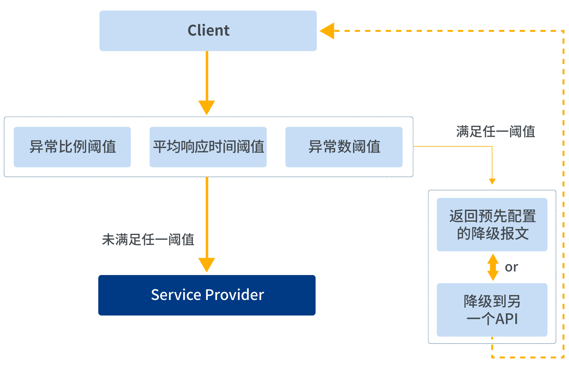當服務(wù)故障時,為了防止整個系統(tǒng)的故障,對系統(tǒng)采取熔斷降級策略。可根據(jù)平均響應時間、秒級異常比例、分鐘級異常數(shù)等維度進行熔斷降級處理。